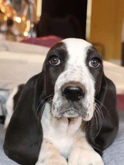 Nebula is on of the newest addition to our basset hound family! Nebula is a black and white basset hound who carries blue, black and white, red and white, lemon and white, mahogany and white, and standard tri. Because of her unique genetics, we call her our “rainbow” puppy. Nebula is AKC registered. She is a gorgeous mix of the European Basset Hound line and the American Basset Hound line. She has a beautiful thick frame, while also retaining some of the American Basset Hound’s slender build. This will lead to greater health benefits and less strain on her small frame. Nebula also has a very mild and well rounded temperament. This is another benefit of her being an even mix of the European Basset Hound and the American Basset Hound.